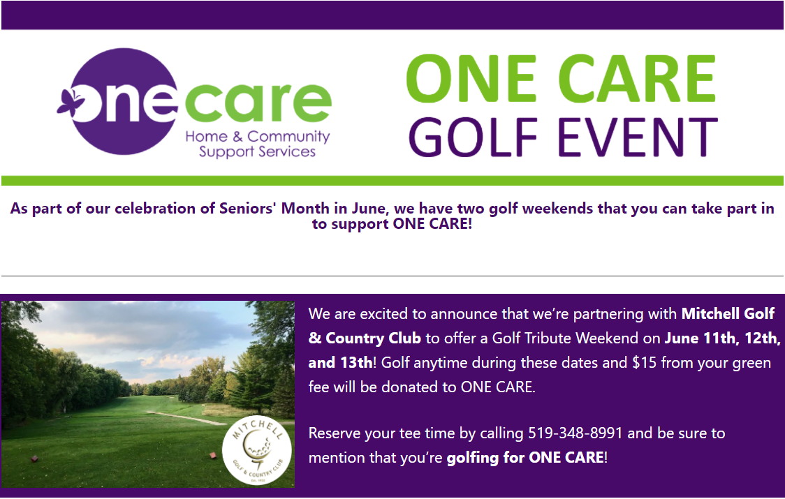 ONECARE Golf Event May 14, 2021 by Date: June 11, 2021 - June 13, 2021 Time: All-day Green Fees are $50 + tax for golfers participating. Carts are extra.